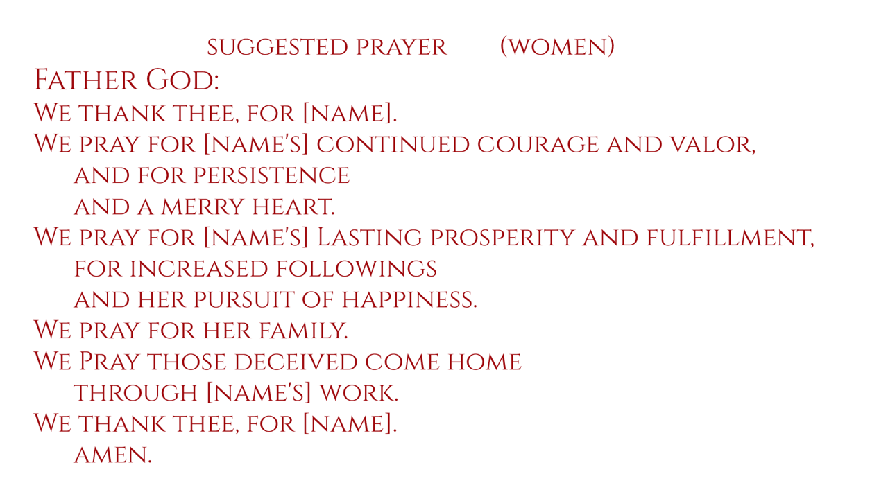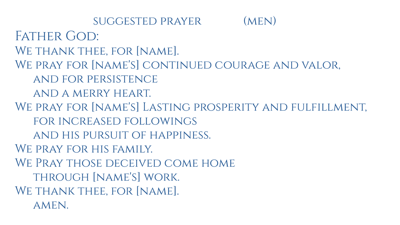 Every US Patriot, regardless of location, is praying for the same person at the same time, revolving every 15 seconds. The written prayers take longer than 15 seconds to recite. You start with the name of the person who is displayed and half way through the prayer just continue with the next name displayed etc. It is written for Hebrew folk and Christian folk to pray together.